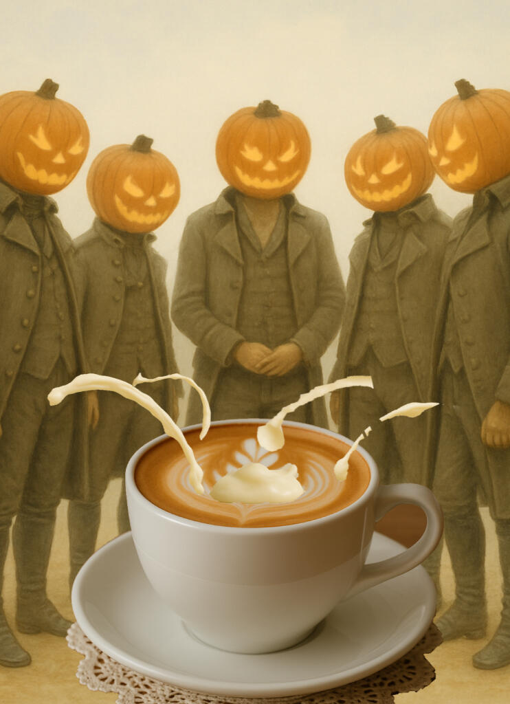 It’s that time of the year again! Cockcockcockandmorecocktember! That special time of year when no matter how many dicks you stuff in yourself, there’s always room for one more. [sighs to self wistfully] This time of year is a wonderful time to reflect on a long, brutally hot summer, to feel gladness at the cool autumn days to come, and to look forward to a relaxing season of sweaters, fall foliage, and that special seasonal treat: pumpkin spiced jizzaccino! As the name implies, they are physics-defyingly hard clumps of wax and metal shavings deep fried in an iron skillet until chocolate brown like the real Jesus’s middle eastern ball sack. Free range? Locally sourced? Who are you, the fucking Pope? Ha ha ha ha ha… No. You’re an easily distractible masochistic intent on finishing this sentence. Okie doke, you! This ain’t your grandma’s Pumpkin Spiced Jizzaccino!