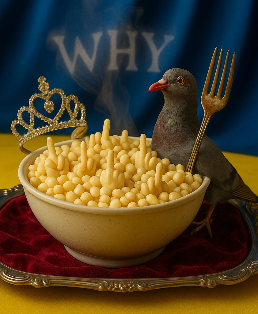 Sprinkle with quiet shame to taste. Serves an abundance of living creatures, but not platypuses. Fuck those pricks. Do not attempt to make.